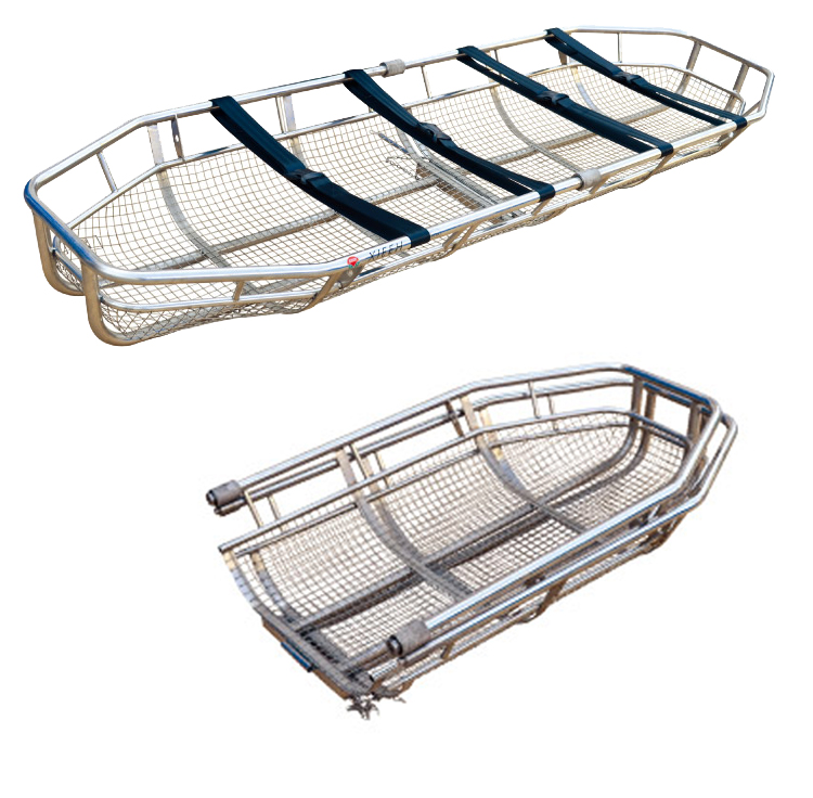 此擔(dān)架的構(gòu)造著眼于急救的特殊性,如崎嶇的山區(qū)、空中或海上救援,框架堅固耐用,簡便可靠的裝置讓操作人員能夠安全快捷的采取急救措施。鉤懸能與飛機(jī)上掛鉤連接,實現(xiàn)野外救援。擔(dān)架配有安全帶和墊子。由不銹鋼管和網(wǎng)制成,不會對病人造成另外的傷害,比普通擔(dān)架更牢固,可與板式擔(dān)架一起使用??煞殖蓛刹糠?,易運(yùn)輸和儲存。