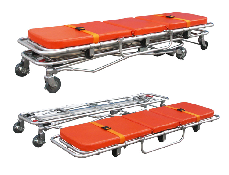 采用高質(zhì)鋁合金材料,采用海綿軟墊,使傷病員躺臥舒適。該產(chǎn)品具有靈巧的結(jié)構(gòu),能便捷地實現(xiàn)多種姿態(tài)變換,通過左右手柄控制,僅需一名救護人員把病人推上救護車。固定支架與救護車相固定,擔(dān)架上車后鎖定,通過分離裝置,可使擔(dān)架和底座分離,可以快速救護病人。