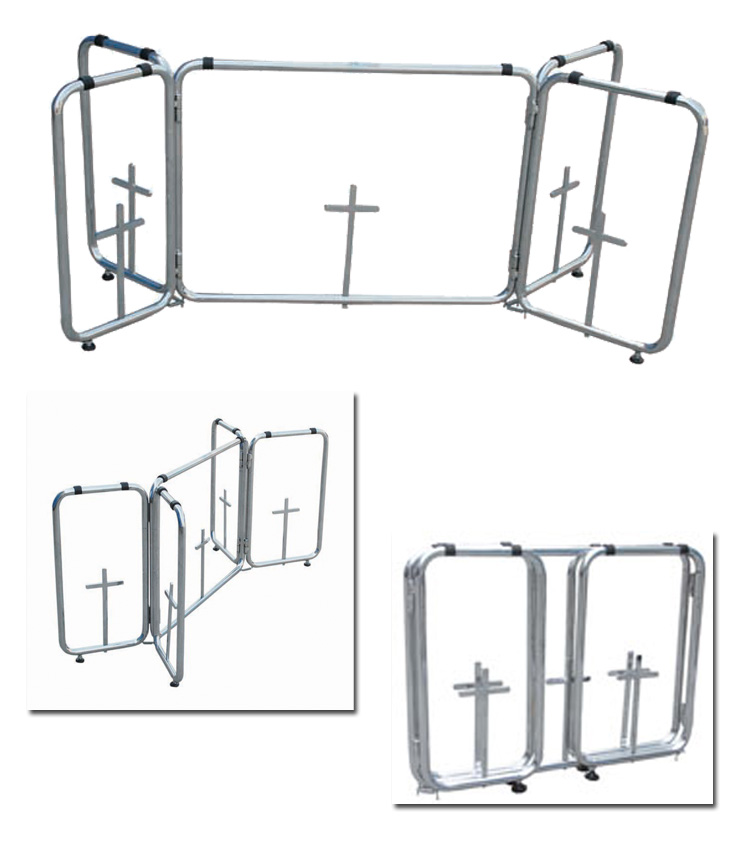 該款棺材由鋼管制成,表面進行3層電鍍,使其表面看上去更加光亮,易于清洗。棺材架可折疊,折疊后體積小,占用空間少。適用于棺材的停放。